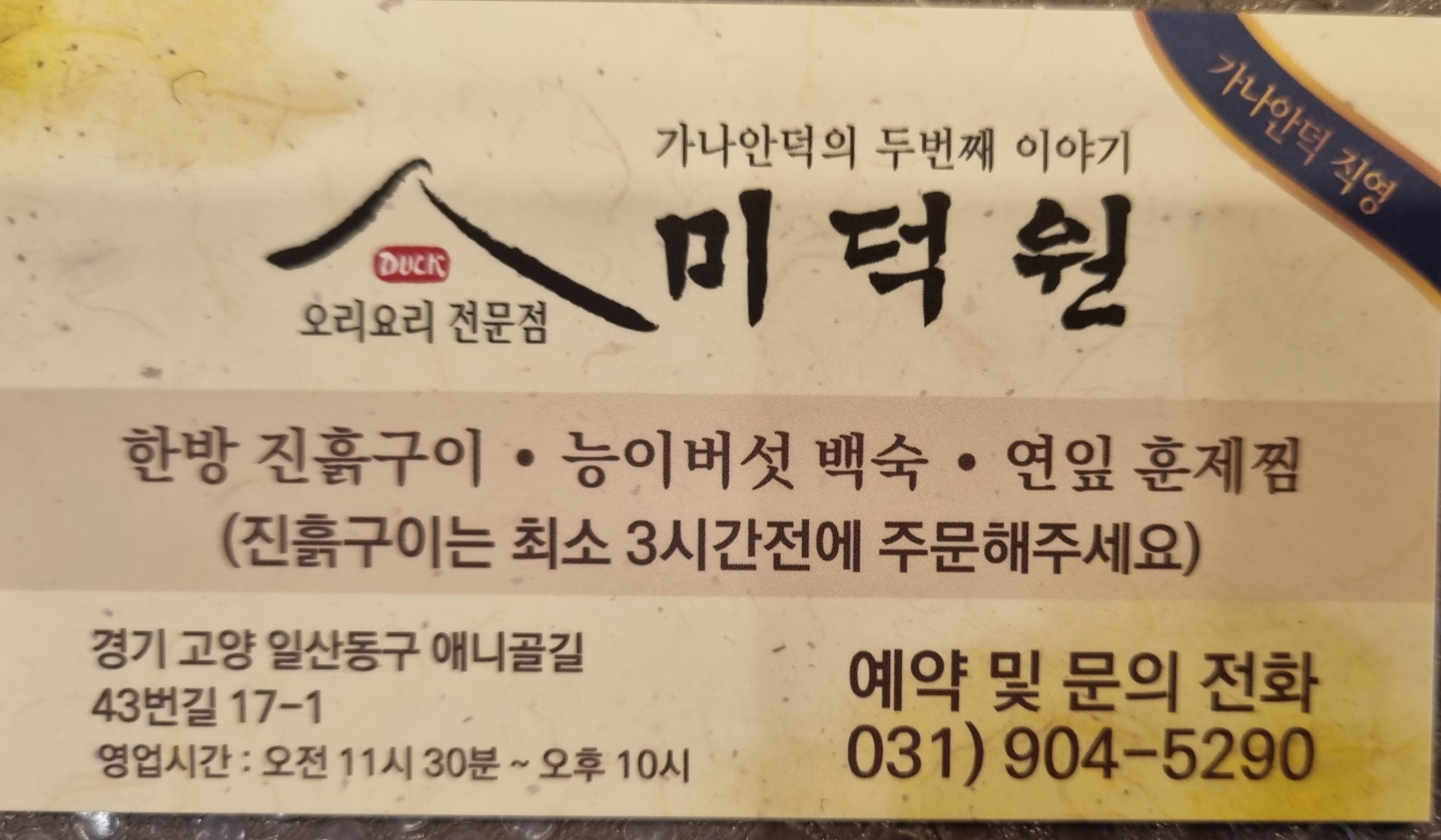 ▩ 미덕원 : 오리요리전문점 031)904-5290