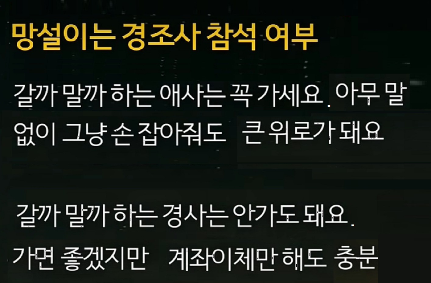 망설이는 경조사 참석 여부, 경조사 대처 기준.