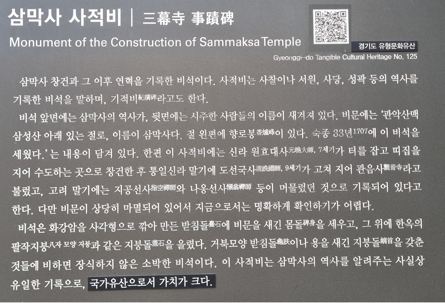 경기도 유형문화유산( 삼막사 사적비, 삼층석탑, 사적비, 마애