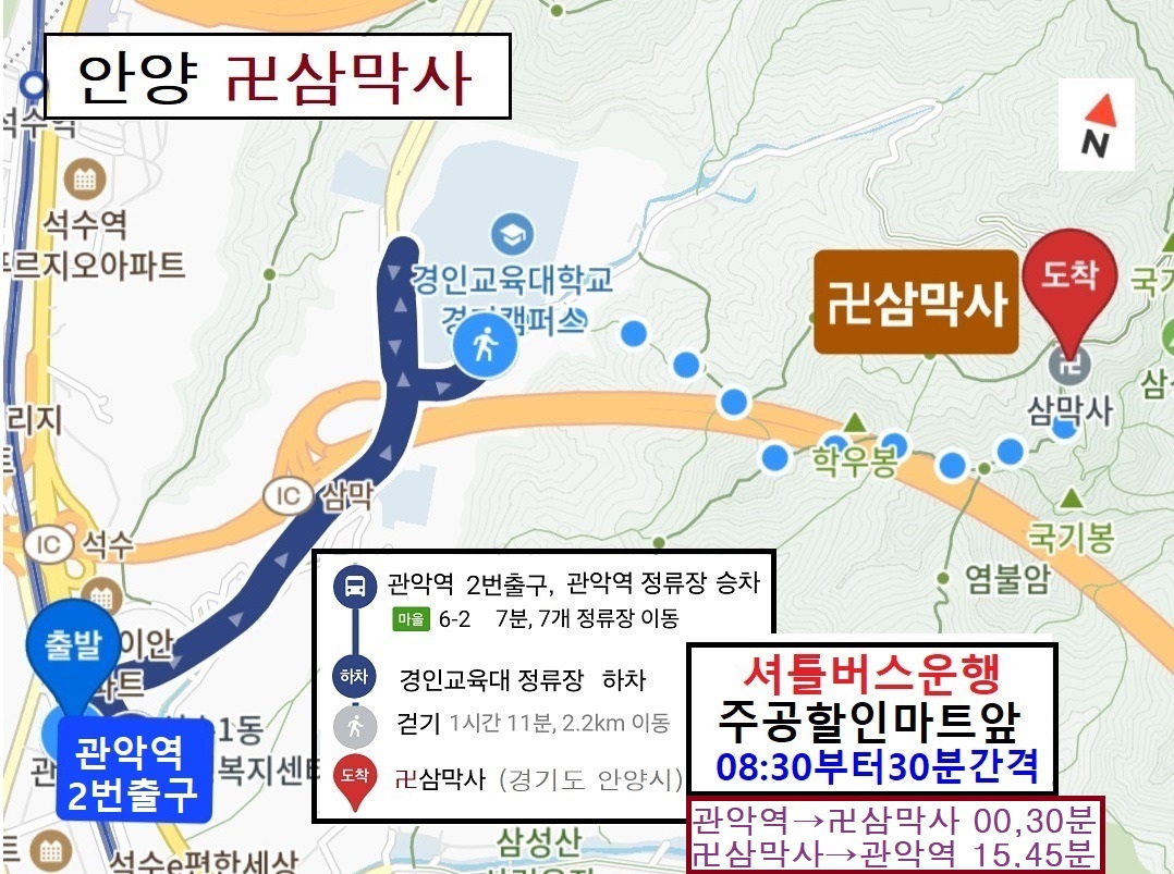 卍삼막사 편도 : 관악역▶약 2시간 / 경인교대경기캠프스정류장▶ 약 1:30