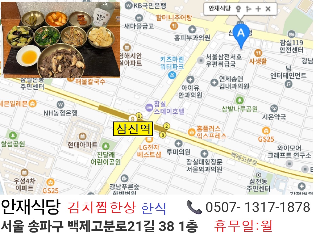 ▩ 삼전역 2번출구 : 안재식당